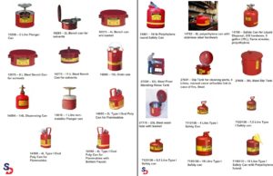 SAFETY CANS/ OILY WASTE CANS/ PLUNGER CANS/ BENCH CANS