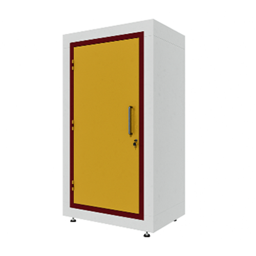 The cabinet is 2-hour fire-rated. The lightweight and compact cabinet allows for easy relocation. To prevent theft this cabinet has a lockable door and adjustable shelves.